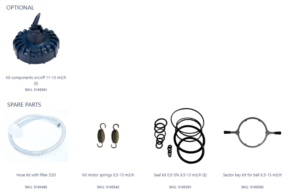 Package Contents: 1 Mixtron Dosing Pump with user manual 1 fixing bracket 1 1.5 meter suction pipe 1 filter 1 Sector key kit for bell 9.5-13 m3/h